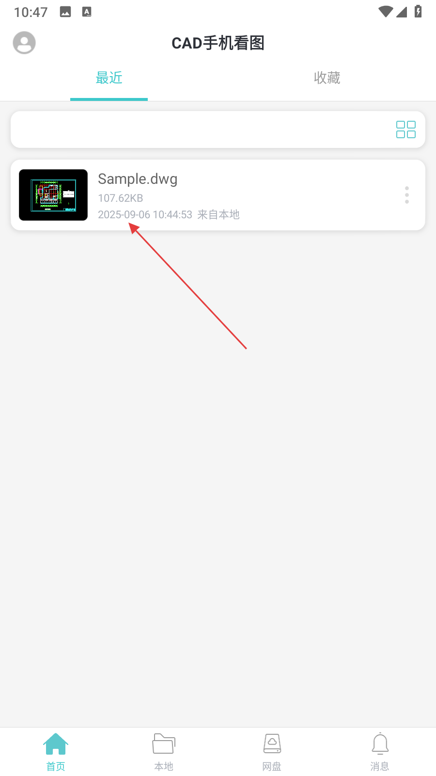 1、打開CAD手機(jī)看圖應(yīng)用,在最近頁(yè)面點(diǎn)擊需要查看的CAD圖紙,進(jìn)入圖紙查看界面。