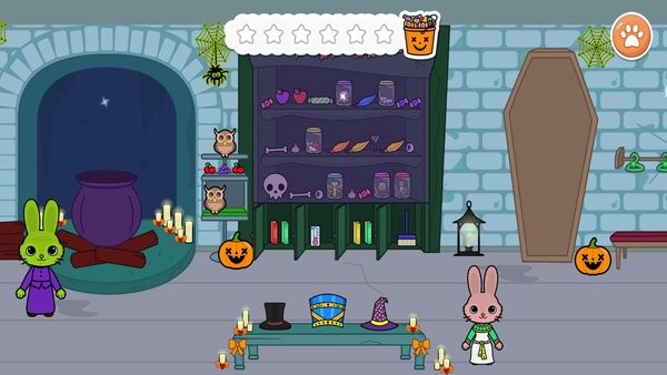 試穿各種不同的女裝!添加奇怪的成分到巫婆大鍋制作魔法藥水!它們會對鬼屋中的兔子和小貓有什么影響?別擔心,它們非常安全!嘗試藥水并找出答案。