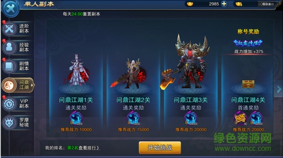 2.問鼎江湖每天不限進(jìn)入次數(shù),并在每天24:00重置,重置后可掃蕩已通過的關(guān)卡;