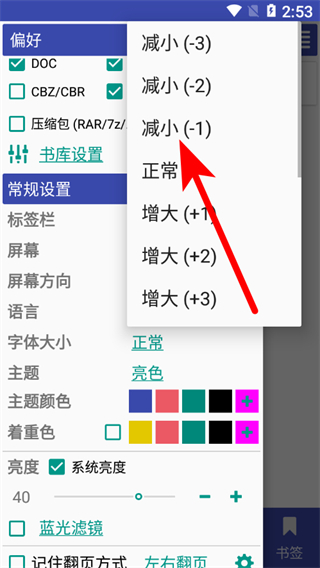 3、選擇合適的字體大小選項(xiàng),減小(-1)、正常、增大(+1)等,即可完成字體大小設(shè)置。