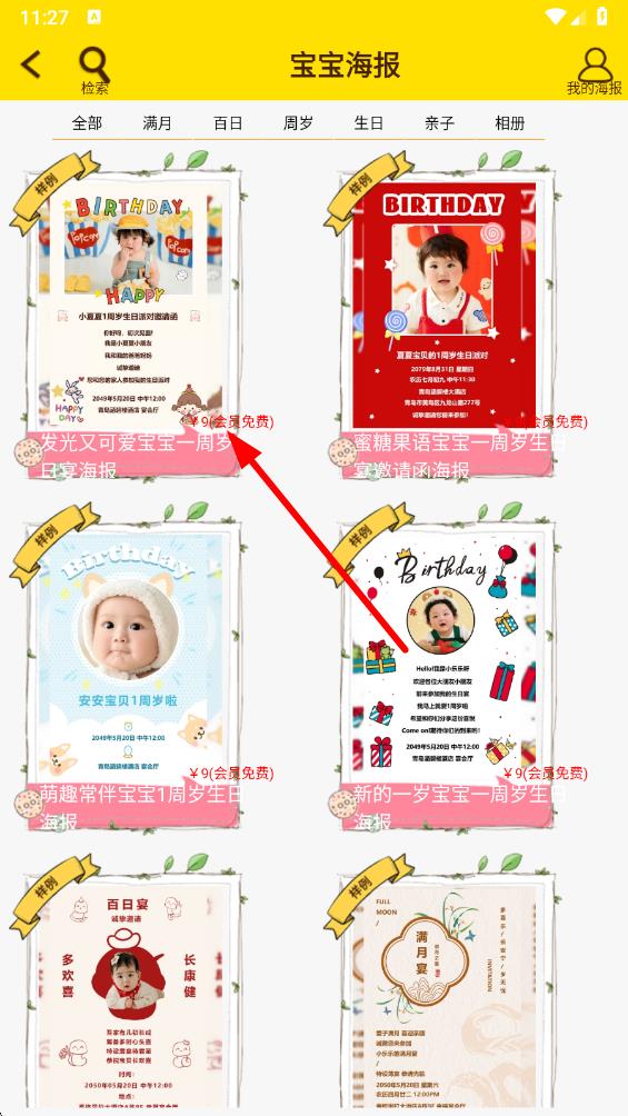 2、在寶寶海報模板選擇頁面,挑選心儀的海報模板并點擊進入。