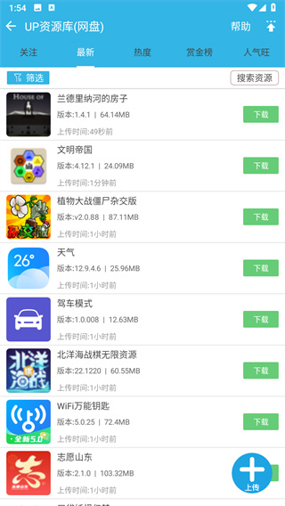 2、最新:查看最新的有其他作者上傳的各種不同的游戲和軟件