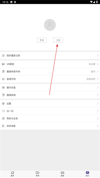 1、啟動暴風(fēng)魔鏡app,進(jìn)入首頁點(diǎn)擊右下角我的圖標(biāo)。
