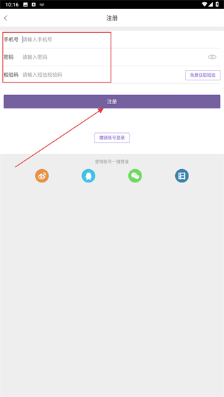 3、在注冊的頁面內(nèi),輸入手機(jī)號、密碼、校驗(yàn)碼再點(diǎn)擊注冊。