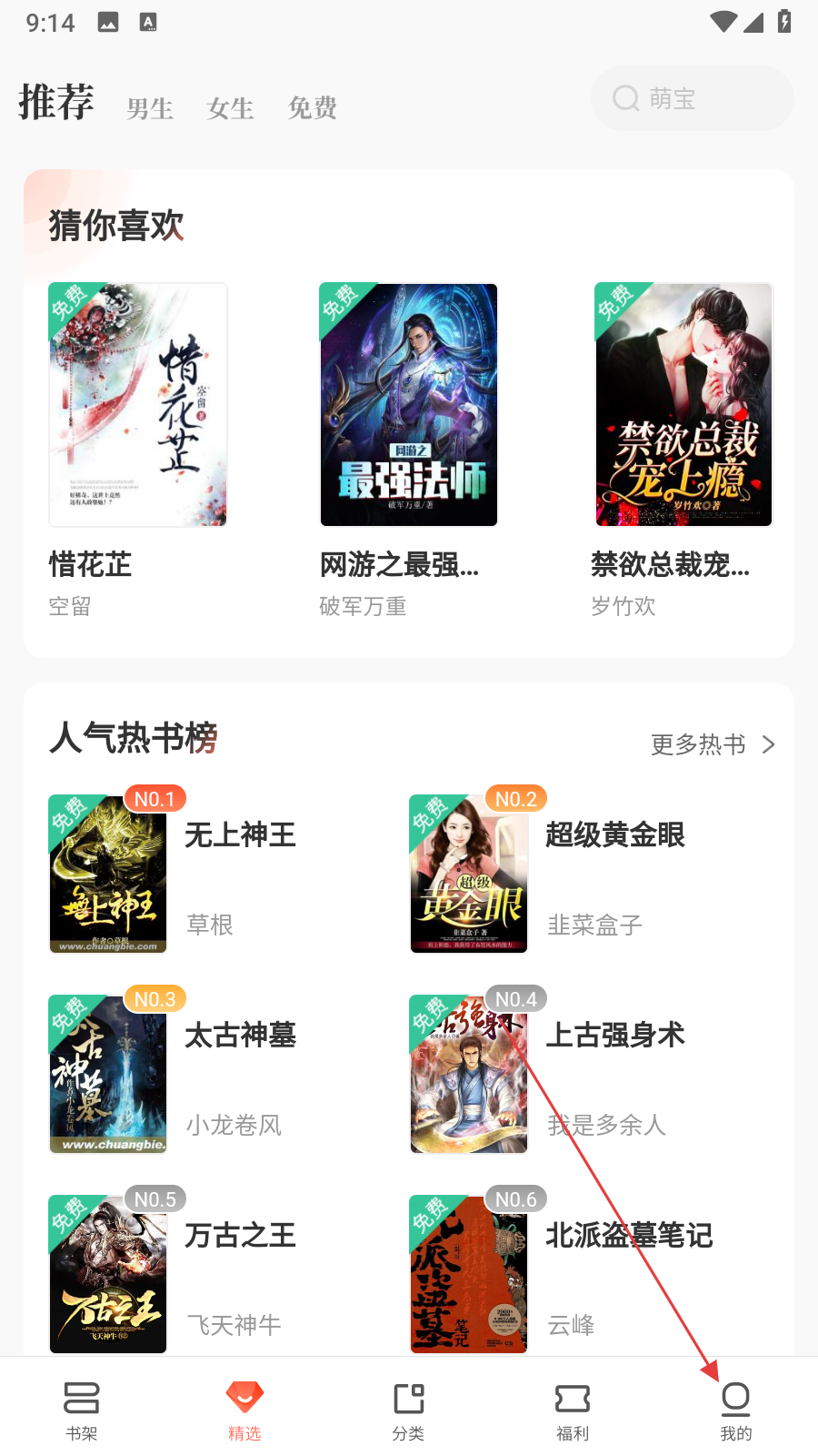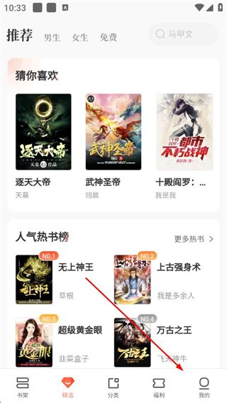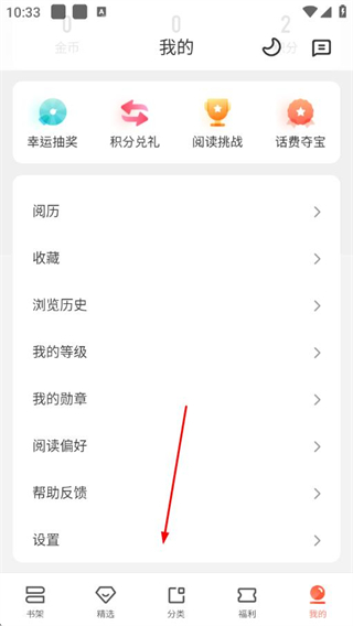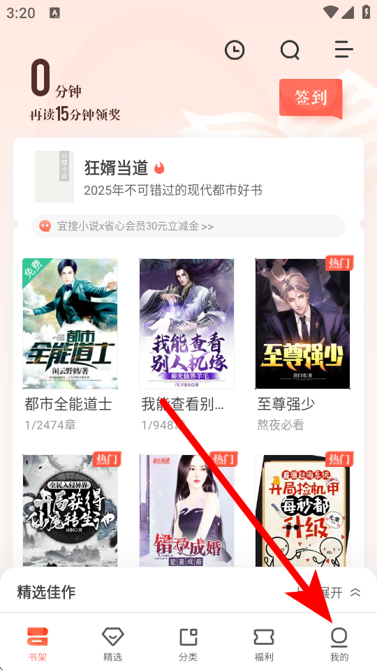 1、打開宜搜小說APP,點擊底部導(dǎo)航欄我的,進入個人頁面。