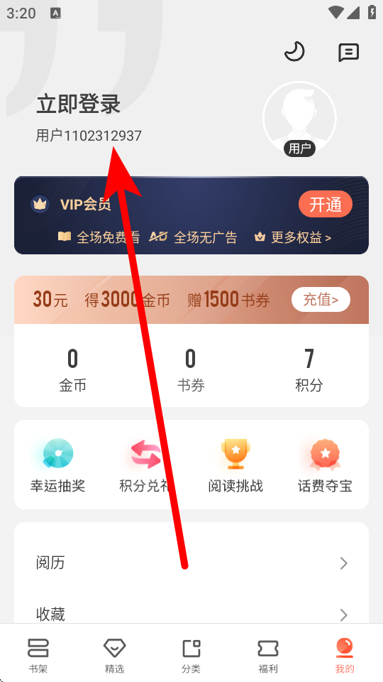 1、打開宜搜小說APP,點擊底部我的,進入個人中心頁面。