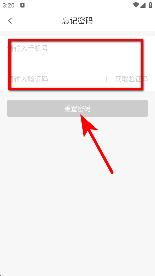 4、點擊忘記密碼,進入忘記密碼界面。