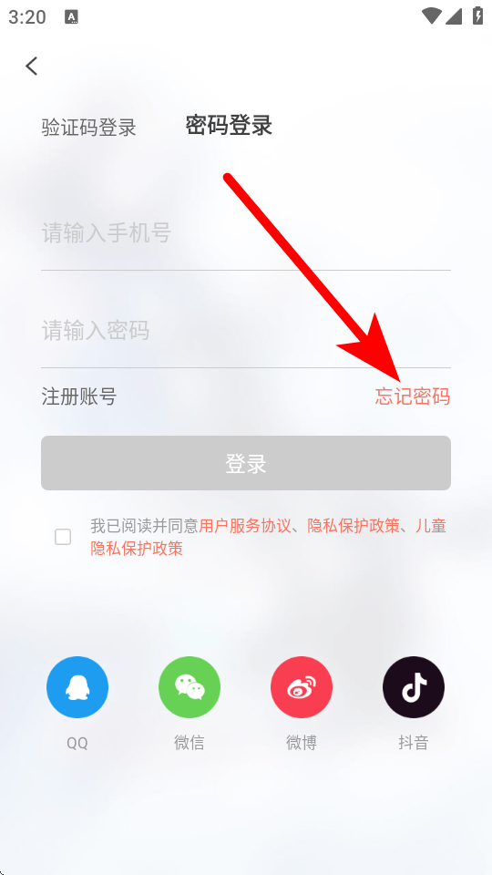 3、在登錄頁面點擊密碼登錄,進入忘記密碼界面。