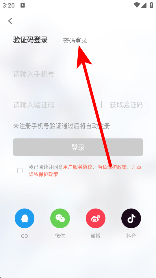 2、在登錄界面,點擊密碼登錄選項,切換至對應(yīng)登錄方式頁面。