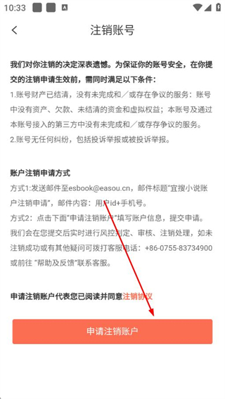 5、在注銷賬號說明界面點擊申請注銷賬戶,完成賬號注銷。