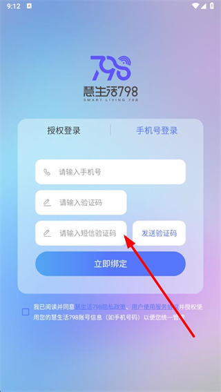 4、在手機(jī)號登錄頁面,輸入手機(jī)號、驗證碼和短信驗證碼,點擊立即綁定按鈕完成手機(jī)號登錄。