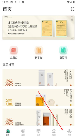 1、打開(kāi)來(lái)艾APP,點(diǎn)擊底部導(dǎo)航欄中的尋艾,進(jìn)入登錄頁(yè)面。