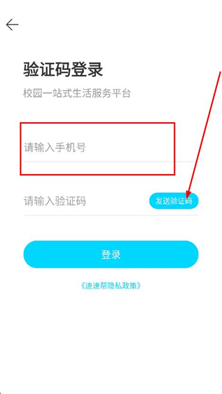 3、進入登錄頁面,輸入手機號并點擊發(fā)送驗證碼。