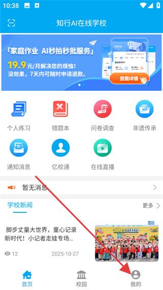 1、打開億谷智慧教育,進(jìn)入時點(diǎn)擊底部我的按鈕。