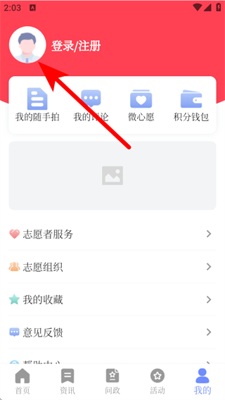 2、在個(gè)人的頁面,需要點(diǎn)擊登錄/注冊,進(jìn)入登錄的界面。