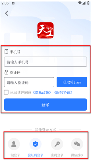 3、可選擇驗(yàn)證碼登錄,輸入手機(jī)號(hào)和驗(yàn)證碼點(diǎn)擊登錄即可,也可選擇其他登錄方式。