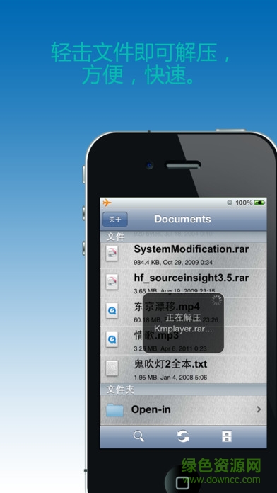 rar解壓器蘋果手機版是一款專為iPhone用戶解決RAR,ZIP文件的解壓工具,支持普通RAR.ZIP文件的解壓縮。另外可以查看文件詳細信息和刪除文件。還可以直接打開音樂文件,安裝包等文件。歡迎下載。