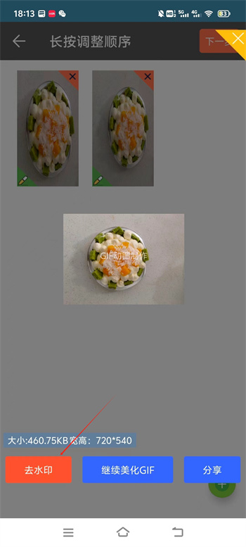 6、這時候照片的gif就會成功生成出來,這時候的照片上面還有水印,只需點擊左下角的【去水印】就可以制作出一個去除水印的gif效果。