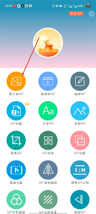 1、在應(yīng)用的首頁中,點擊你需要轉(zhuǎn)GIF的功能選項,小編選擇這里的【圖片轉(zhuǎn)GIF】為例點擊進(jìn)入其中;
