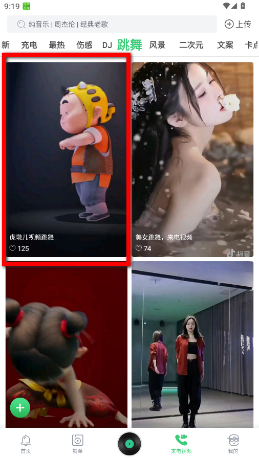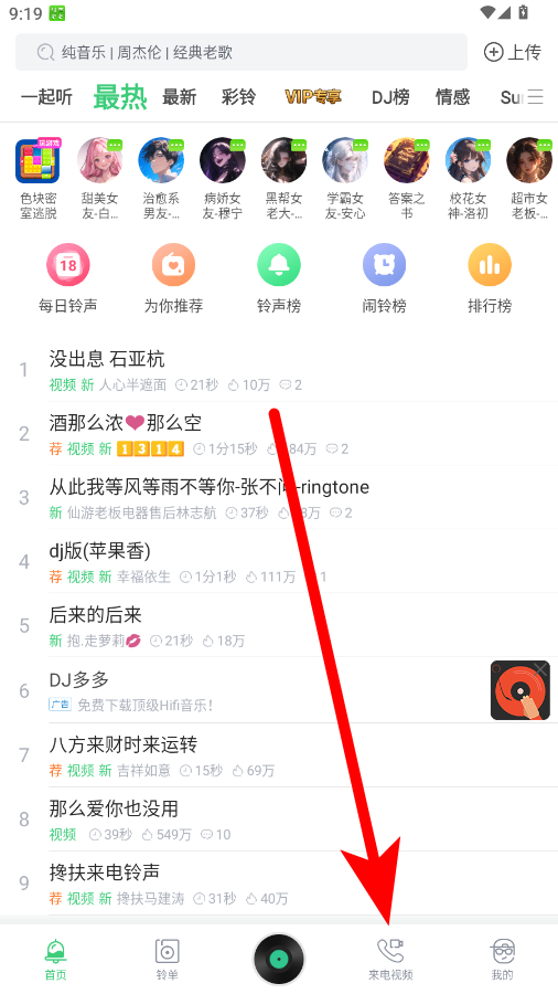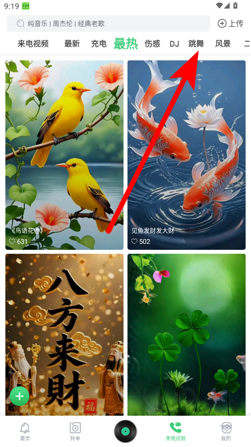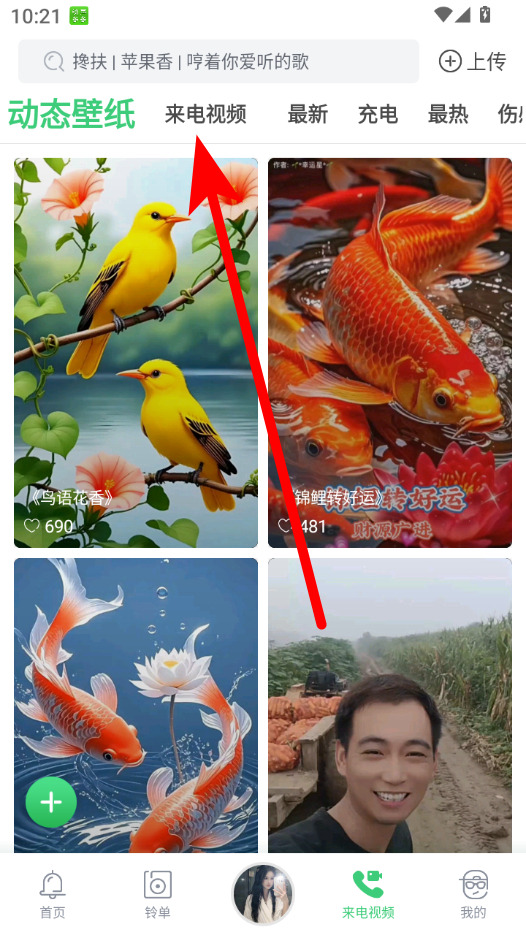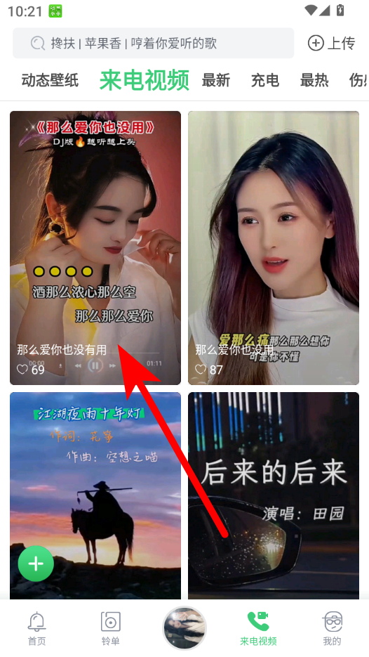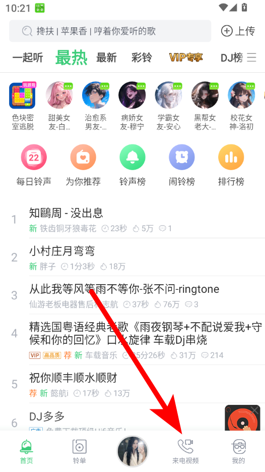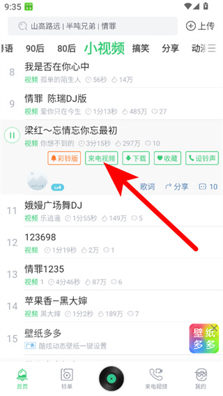 1、在鈴聲多多首頁,點擊來電視頻選項,進入來電視頻頁面。