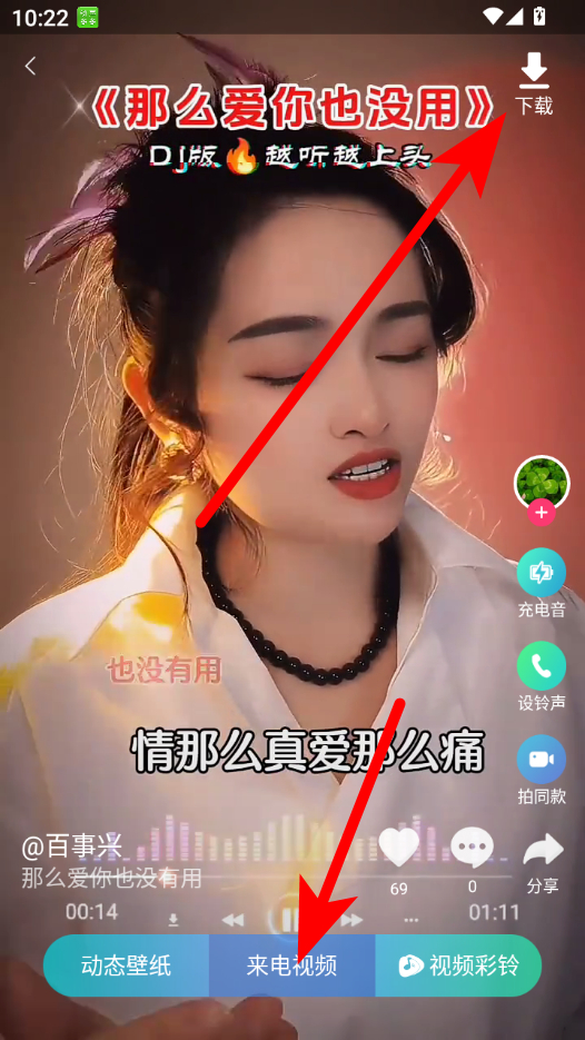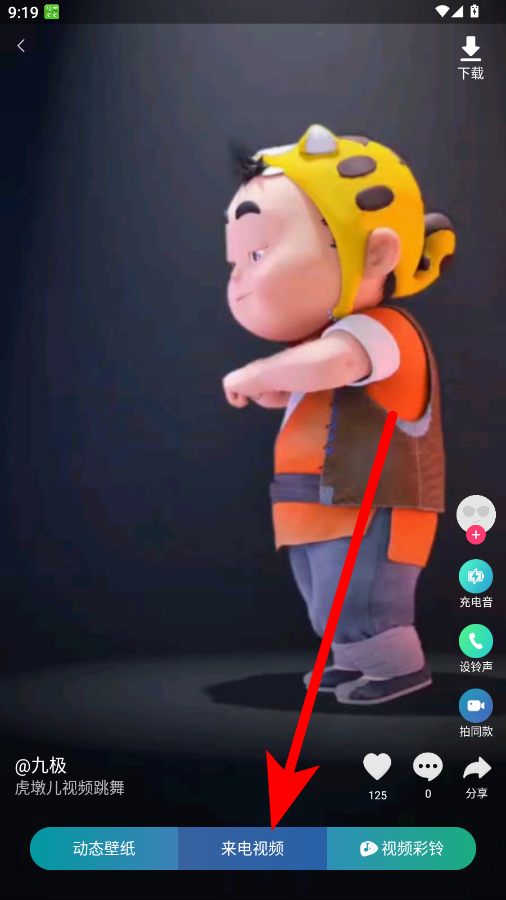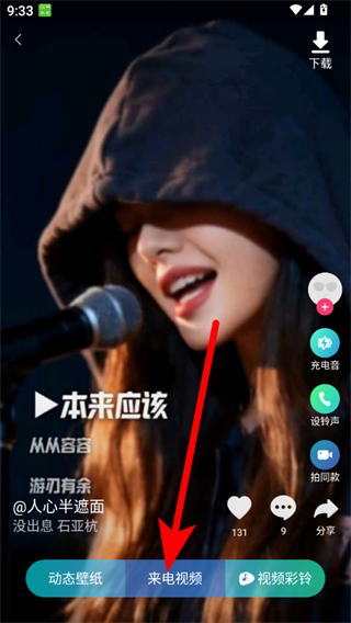 4、在來電視頻詳情界面,可進行下載、設鈴聲等操作,完成來電視頻設置。