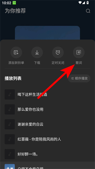 2、在功能菜單中,點擊歌詞選項,進入歌詞界面。