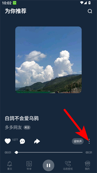 1、在鈴聲多多app音樂播放頁面,點擊右側三點圖標,展開功能菜單。