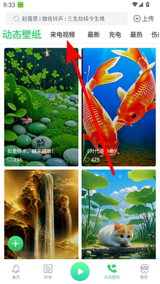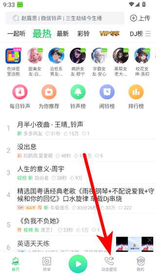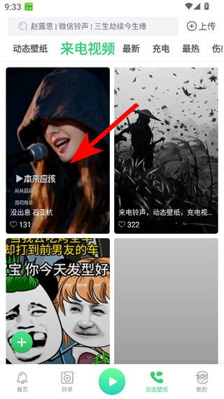 1、在鈴聲多多首頁,點擊動態(tài)壁紙選項,進入對應板塊。