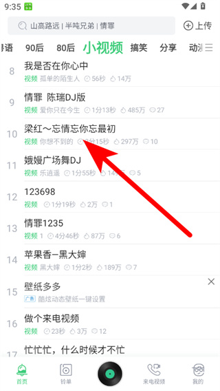 1、在鈴聲多多首頁,點擊小視頻選項,進入小視頻列表頁面。