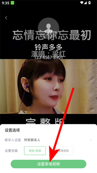 4、在視頻設置界面,點擊設置來電視頻按鈕,即可完成來電視頻設置。