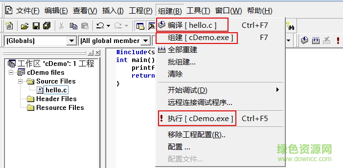 進(jìn)入工程目錄 E:\cDemo,除了 hello.c,還會(huì)看到很多其他文件,它們是VC6.0創(chuàng)建的,用來(lái)支持當(dāng)前工程,不屬于C語(yǔ)言的范圍,你可以忽略它們。