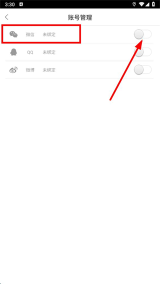 4、在賬號管理頁面,找到微信綁定選項,點擊右側(cè)的開關(guān)按鈕,按照提示完成微信綁定操作。