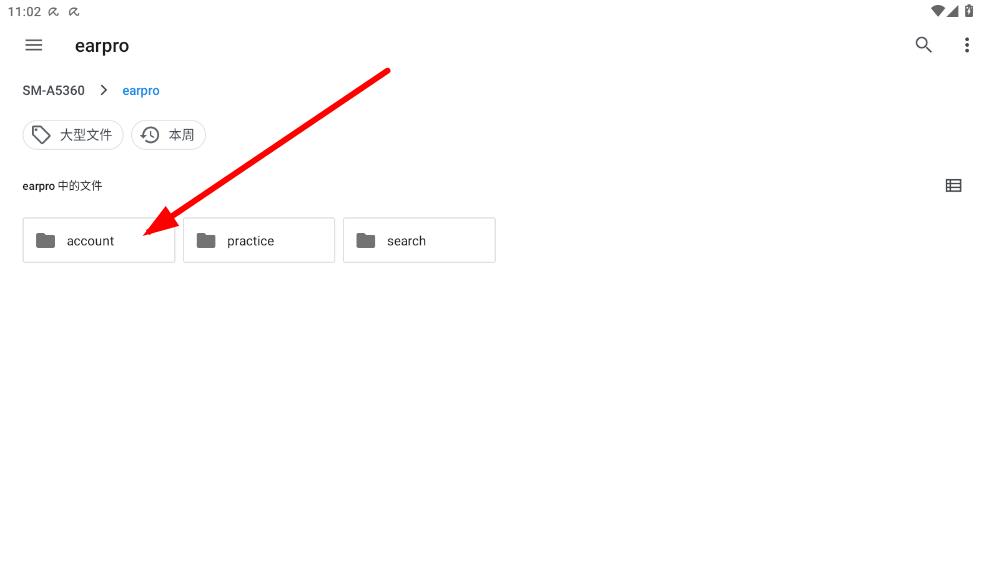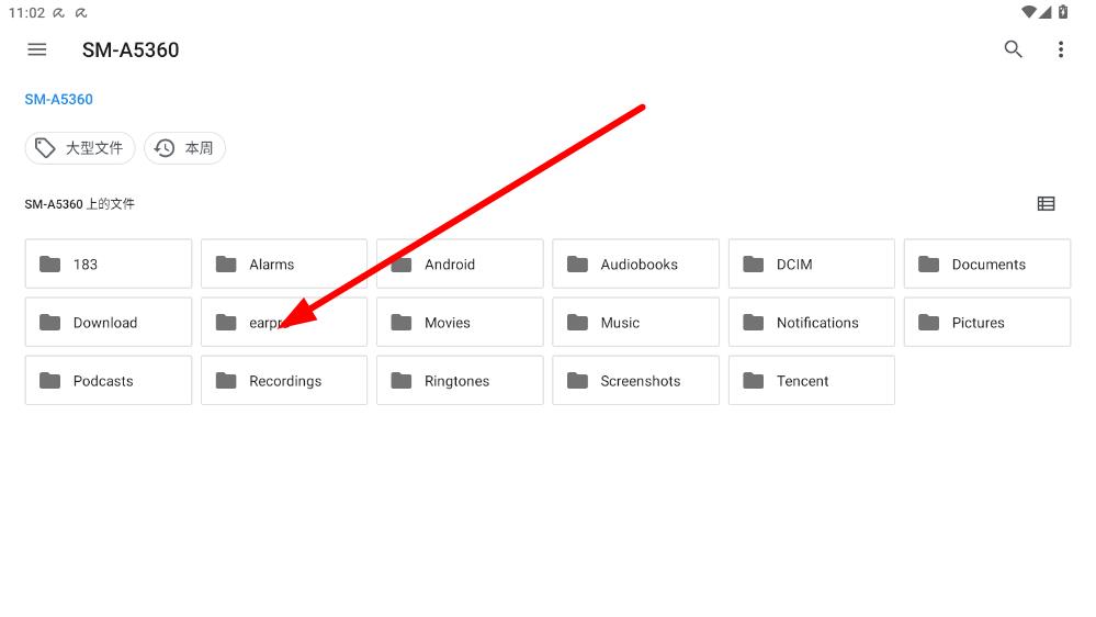 2、點(diǎn)擊后進(jìn)入文件選擇界面,點(diǎn)擊設(shè)備名稱如SM-A5360進(jìn)入設(shè)備存儲目錄。