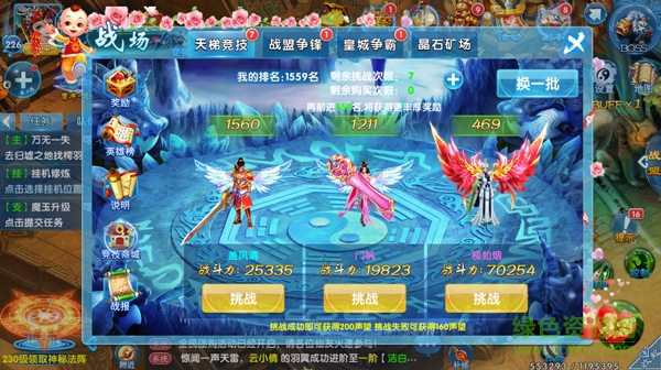 1.天梯競(jìng)技:在天梯競(jìng)技中,玩家需要通過(guò)不停的戰(zhàn)勝其他玩家或守衛(wèi)來(lái)提升自己的名次,名次越高,獲得的競(jìng)技場(chǎng)獎(jiǎng)勵(lì)也越多,選擇挑戰(zhàn)對(duì)象,挑戰(zhàn)成功會(huì)獲得聲望的獎(jiǎng)勵(lì)并且排名提升,挑戰(zhàn)失敗,則只能獲得部分的聲望獎(jiǎng)勵(lì)并且排名不變。