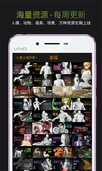 「Pofi」人偶資源包含日式、美式、韓式、寫實(shí)等不同繪畫風(fēng)格人偶,還包括動(dòng)物(例如駿馬、老虎、飛鳥),昆蟲,交通工具,軍事機(jī)械,植物等上千款資源。「Pofi」與國(guó)內(nèi)外著名漫畫家、原畫師合作,發(fā)布具有作者原創(chuàng)風(fēng)格屬性的人偶形象。