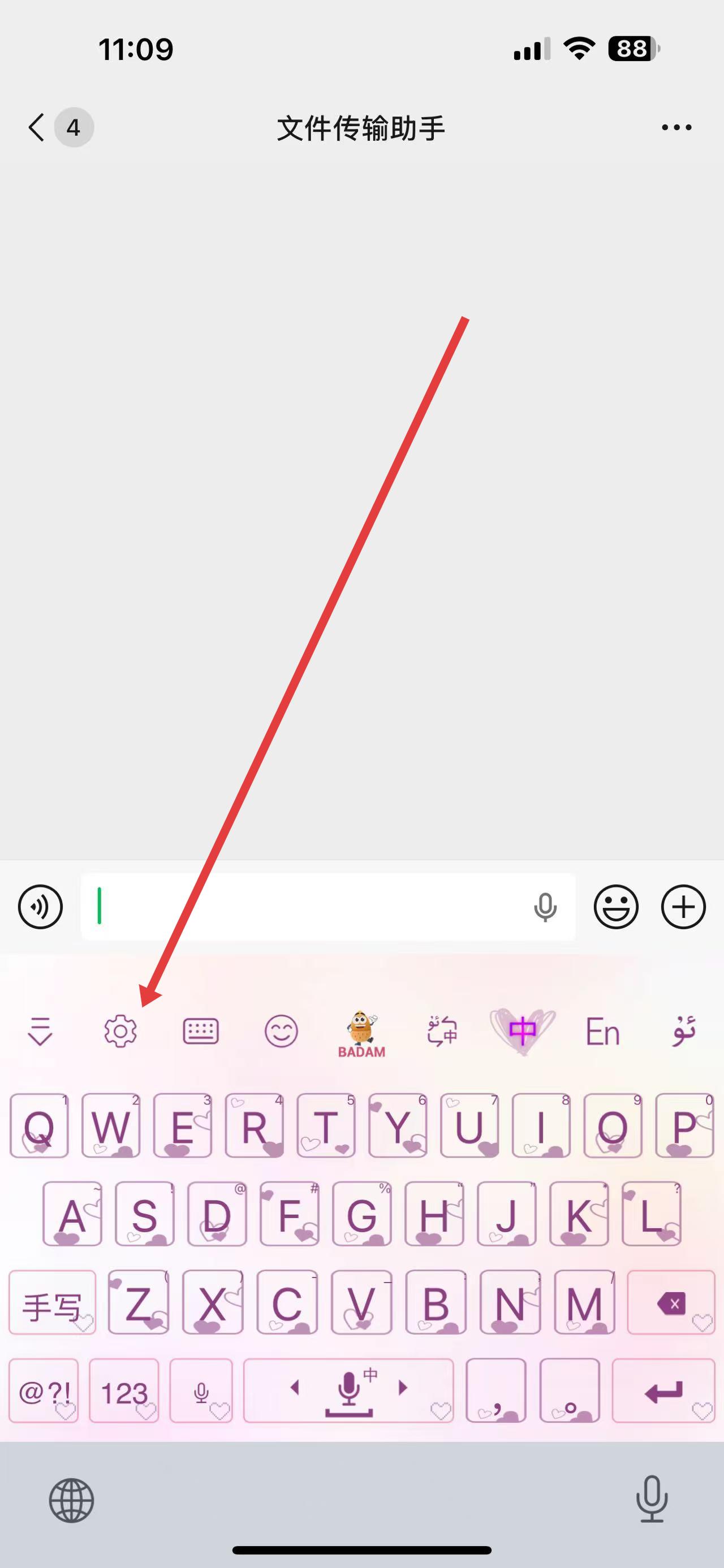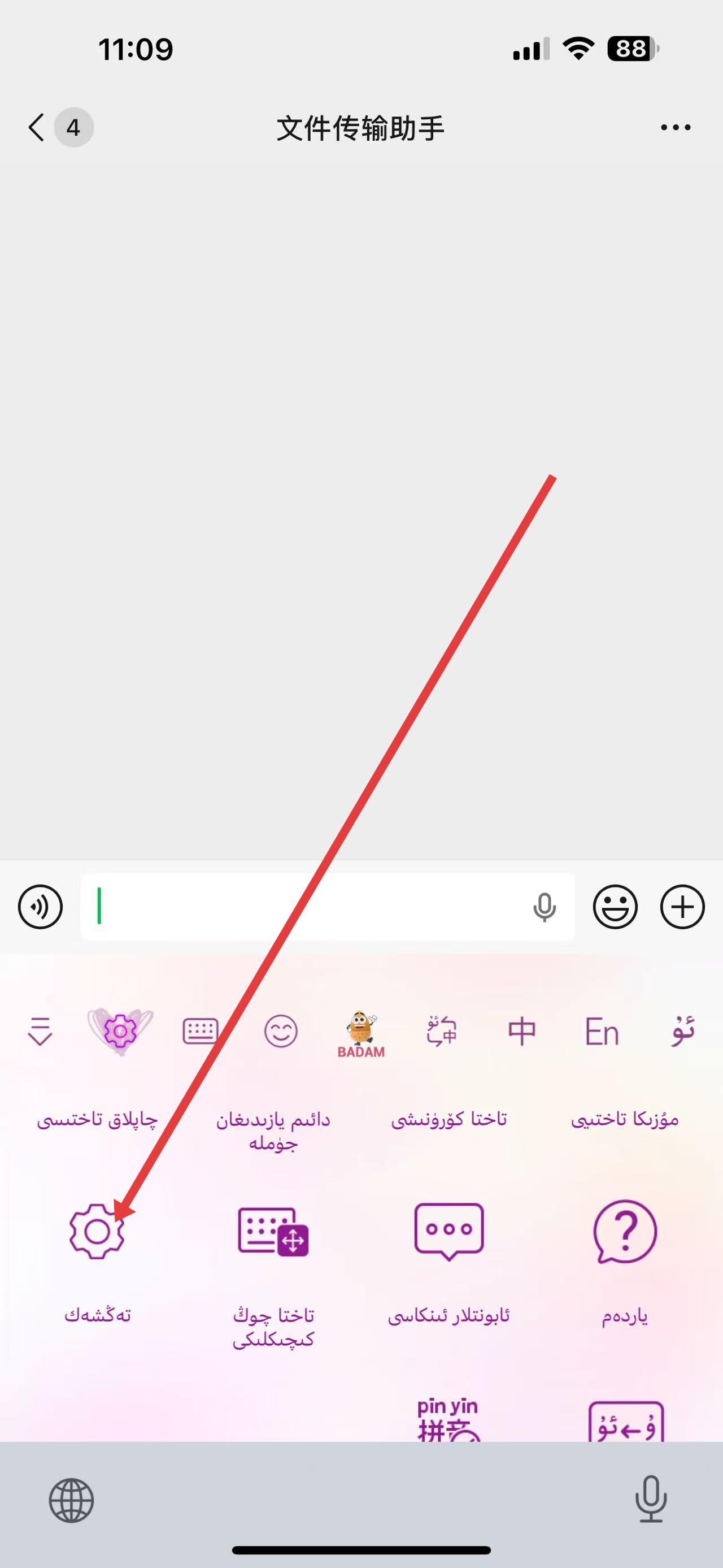 1、在維語(yǔ)輸入法鍵盤界面,點(diǎn)擊齒輪形狀的設(shè)置按鈕。