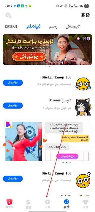 1、打開維語(yǔ)輸入法應(yīng)用,點(diǎn)擊底部的設(shè)置選項(xiàng)。
