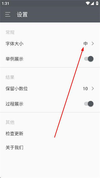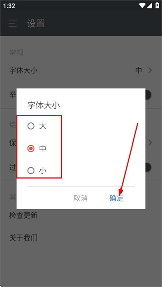 3、在設(shè)置頁面,點(diǎn)擊字體大小選項(xiàng),彈出選擇框。