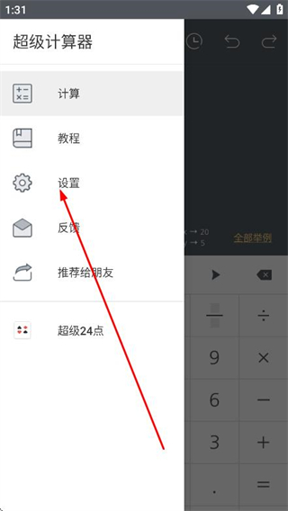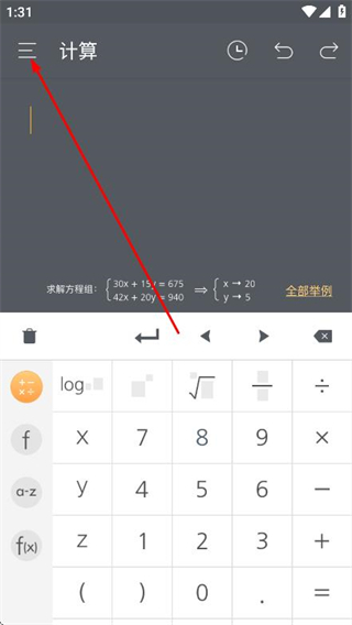 1、打開超級計(jì)算器app,點(diǎn)擊左上角的菜單圖標(biāo)。