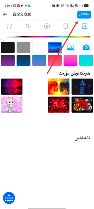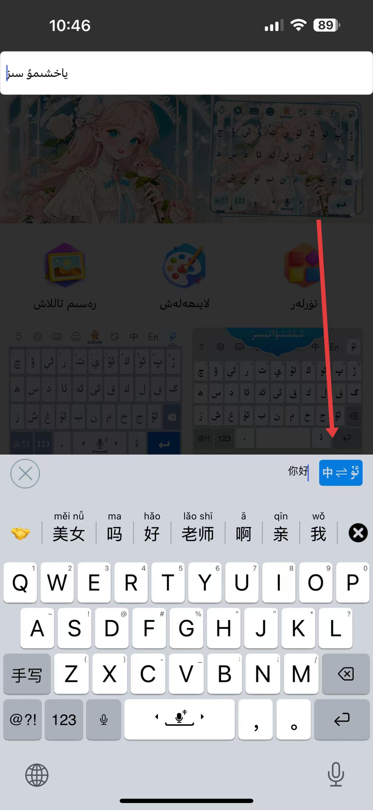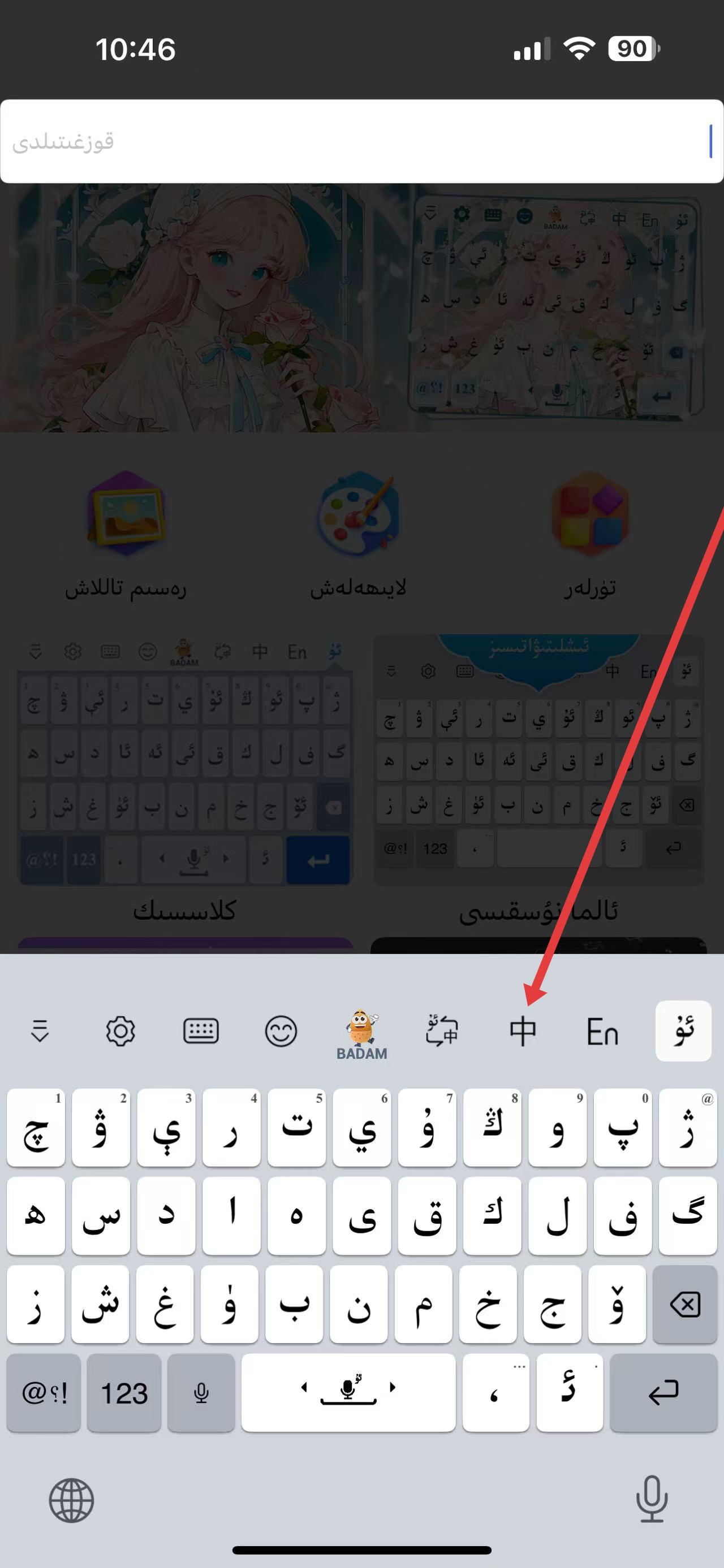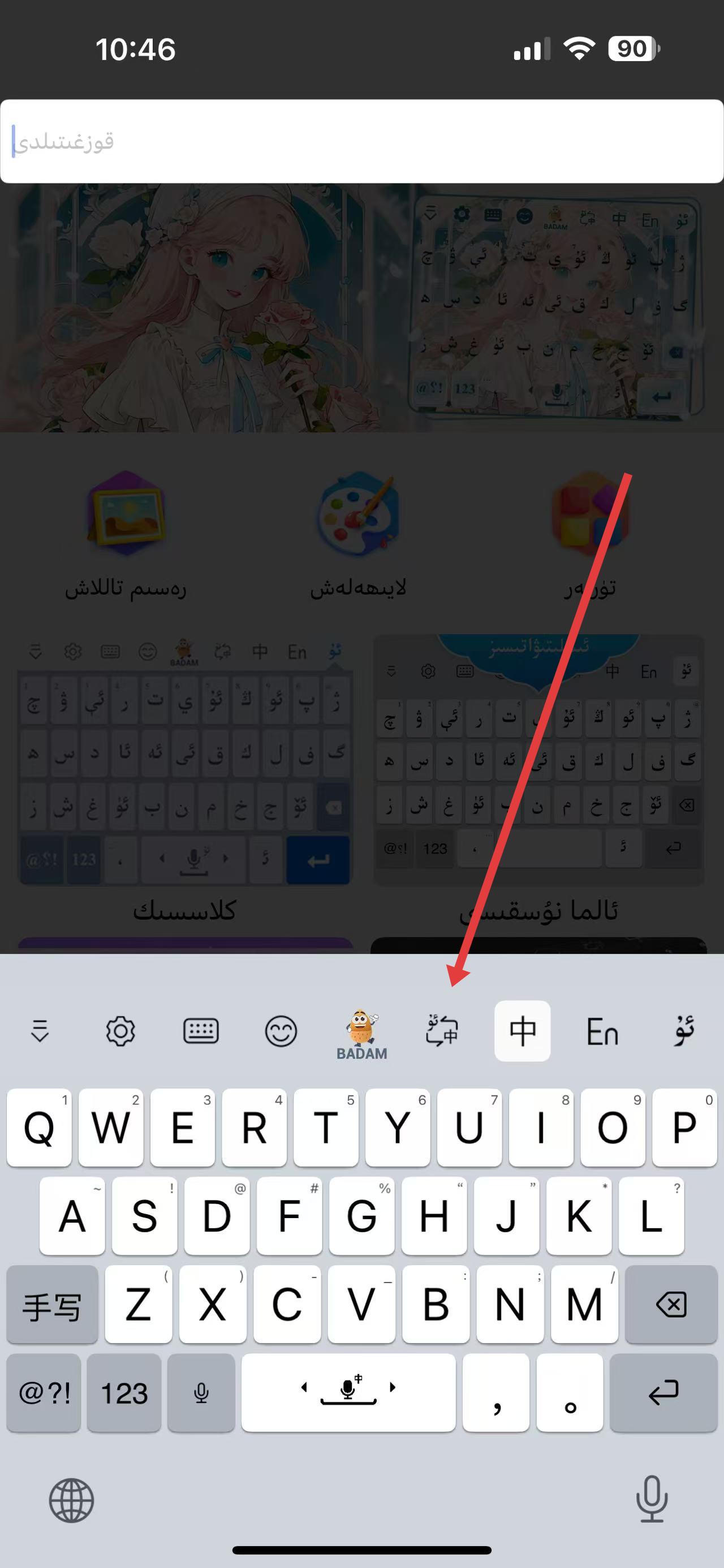 1、在維語輸入法鍵盤,點擊上方中字按鈕,可切換輸入模式。