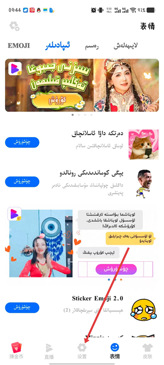 1、打開維語輸入法,點擊底部設置選項,進入設置界面。