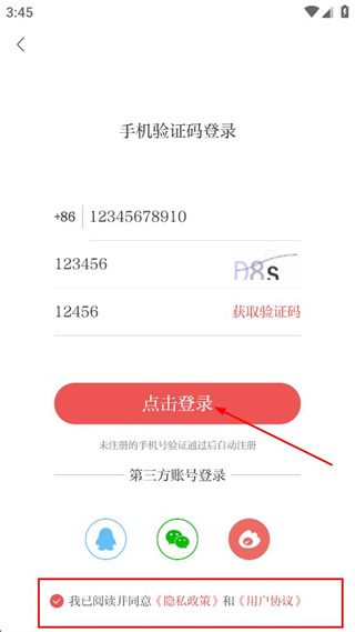 4、勾選我已閱讀并同意隱私政策和用戶協(xié)議,點(diǎn)擊登錄。