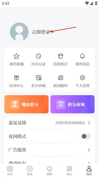 2、在我的頁面,點(diǎn)擊立即登錄。