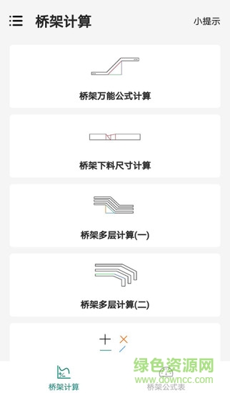 橋架彎頭計算器功能全面使用簡單,支持無網(wǎng)絡(luò)離線使用,功能包括,橋架彎頭的做法圖解,橋架彎頭計算口訣,橋架畫法切法介紹,橋架勾股定理計算,橋架下料尺寸的計算,橋架彎頭角度計算,橋架爬坡計算,橋架水平彎頭計算及多層橋架的計算。