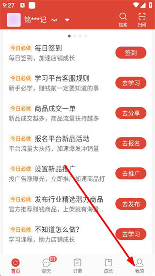 1、打開拼多多商家版APP,點擊底部導航欄中的我的選項進入個人頁面。