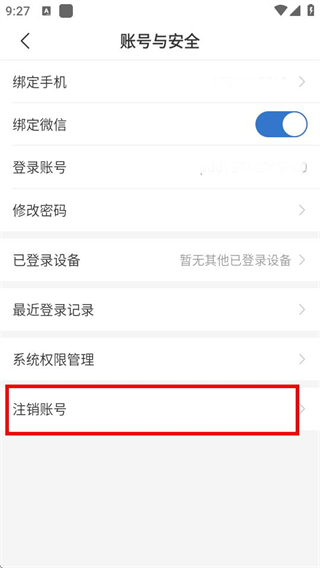 4、在賬號與安全頁面里,找到并點擊注銷賬號,后續(xù)完成相關操作后,即可注銷賬號。