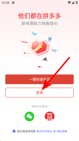 1、打開拼多多商家版APP,我們需要點擊登錄的按鈕。