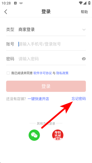 2、進入登錄的頁面后,我們需要點擊忘記密碼的選項。