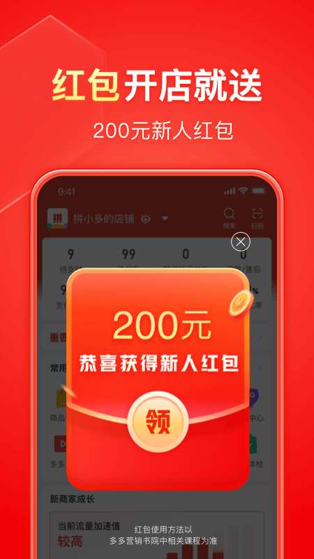 拼多多商家版專門為拼多多平臺商戶打造的掌上店鋪管理軟件,為商戶提供移動化、便捷化的店鋪運營解決方案,無論是已有店鋪的商戶還是計劃開店的群體,都能從中獲得適配需求的功能支持,而對于有意向在拼多多平臺開店的用戶,為開店流程提供基礎支持,全方位助力商戶高效開展店鋪管理與運營工作。