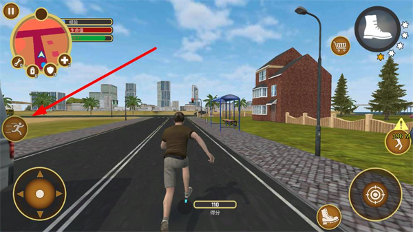 3、點(diǎn)擊奔跑按鈕可讓角色快速移動(dòng),在追擊敵人或趕時(shí)間完成任務(wù)時(shí)使用,提升移動(dòng)效率。